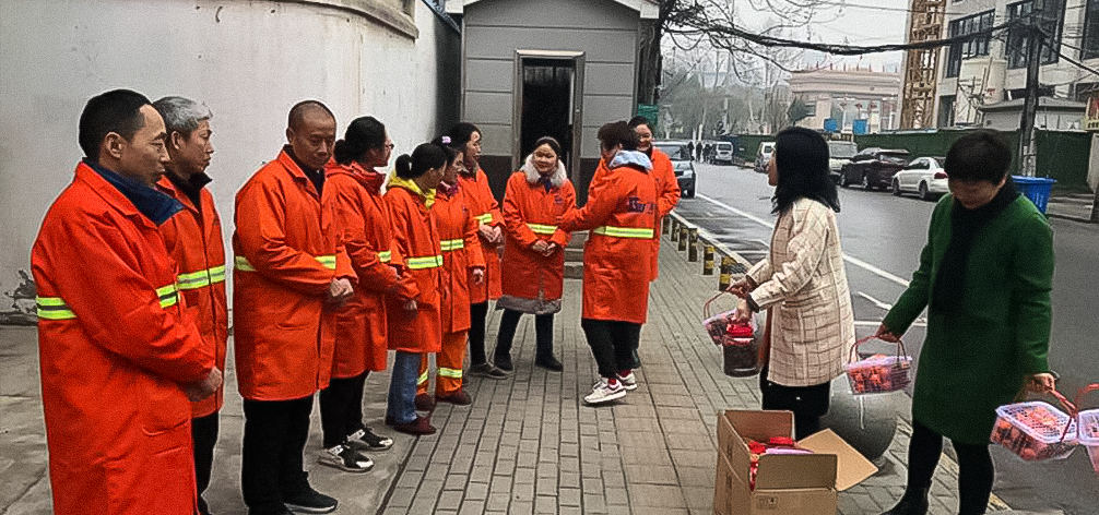 春节前夕,广美公司环卫工人仍坚守在一线,工作在大街小巷,为节日期间城市的整洁和市民的生活环境保驾护航。2月4日上午,为了表达对广美环卫人的关爱,武汉市洪山区珞南街陈主任代表街道向辛苦工作在一线的市容监督员和环卫工人送来了新春的祝福与问候,并将春节慰问品送到环卫工人手中。珞南街分管环卫工作的江主任、钱所长、洪山区城管委珞南中队的杜华斌队长也参加了慰问。