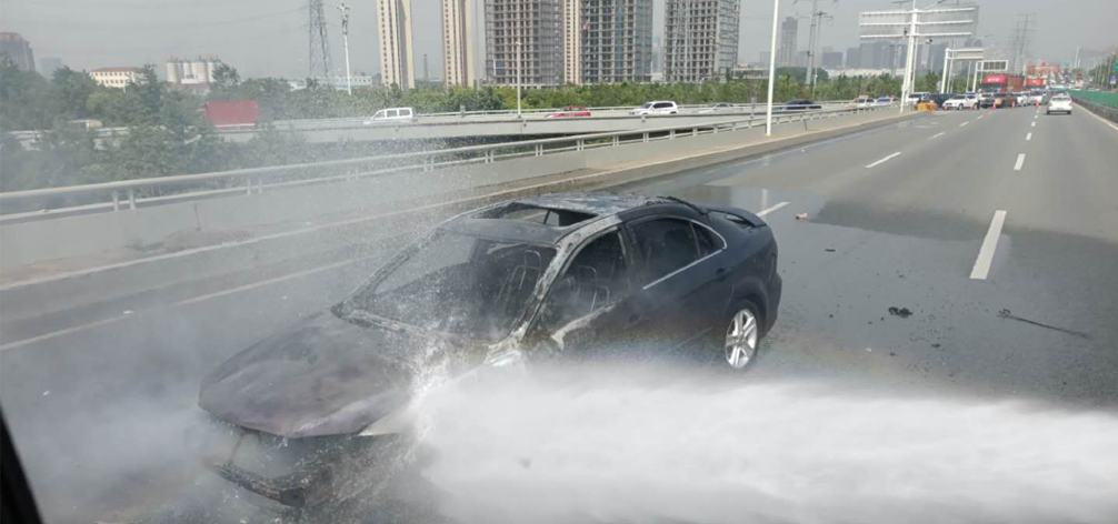 想到情况紧急,为避免火灾事故扩大,向秀班长赶紧驾着一辆牌照为鄂AMV528的高压水车赶往事故发生地,并在现场交警的允许和帮助下,以最快的速度逆行对现场自燃车辆进行灭火处置,整个高压灭火时间持续近半个小时,直到早上10:30分左右才完全扑灭火种。在接近自燃事故的尾声,消防大队才派人赶到现场,对此次车辆自燃事故进行了相关鉴定。