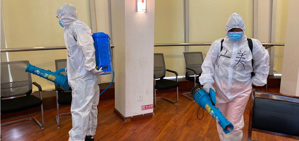 在相亲会开始之前,广美公司消杀班组约7人,带着专业的雾炮枪对会场各个角度进行了全面消杀处理,给参会的十余家公司创造一个放心的企业推介环境。